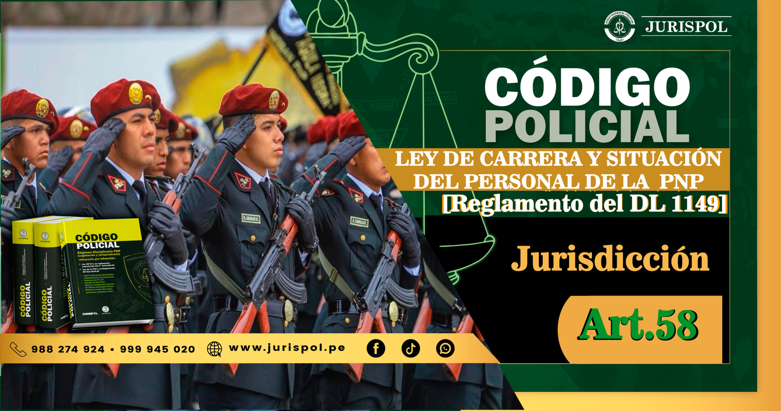 [Reglamento del DL 1149] Mediante el DS 016-2013-IN, publicado el 17NOV2013, se aprobó el Reglamento del Decreto Legislativo 1149; a través del área de redacción y observatorio jurídico de Jurisprudencia Policial – JURISPOL, se ha elaborado y seleccionado criterios estratégicos que permiten aplicar correctamente esta normativa. Artículo 58.- Jurisdicción.