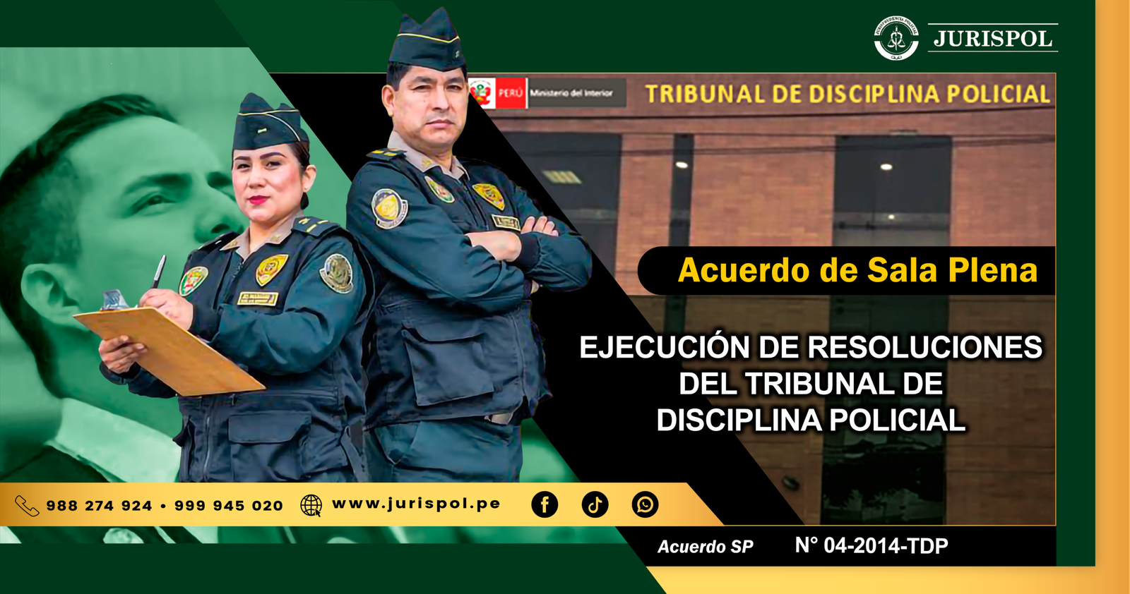 [Acuerdo de Sala Plena TDP] Con fecha 14 de agosto de 2014, se publicó en el diario oficial «El Peruano» el ACUERDO 4 de la Sala Plena N° 2014, aprobado mediante la Resolución de Presidencia N° 001-2014-TDP, del 19JUN2014, sobre la Ejecución de resoluciones del tribunal de disciplina policial. ⇒DESCARGA AQUÍ⇐