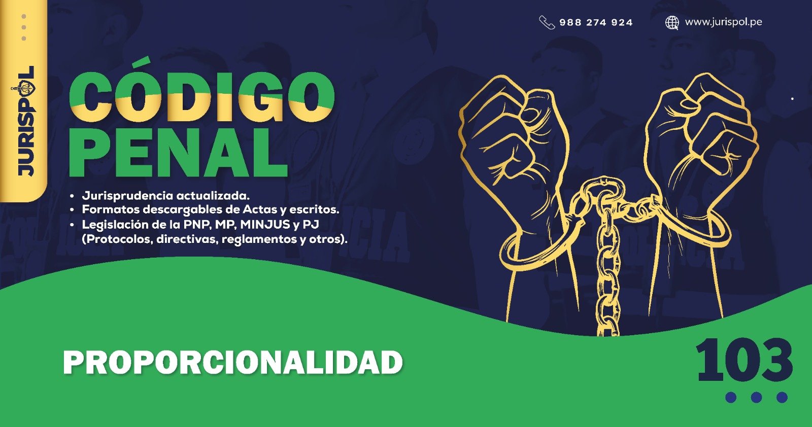 [Código Penal] En virtud del Decreto Legislativo 635, se promulgó el CÓDIGO PENAL PERUANO, a través del área de redacción y el observatorio jurídico de Jurisprudencia Policial – JURISPOL, se ha elaborado Jurisprudencia actual y esencial, una selección estratégica de criterios que permiten comprender y aplicar correctamente esta normativa, particularmente el Art. 103 .- Proporcionalidad