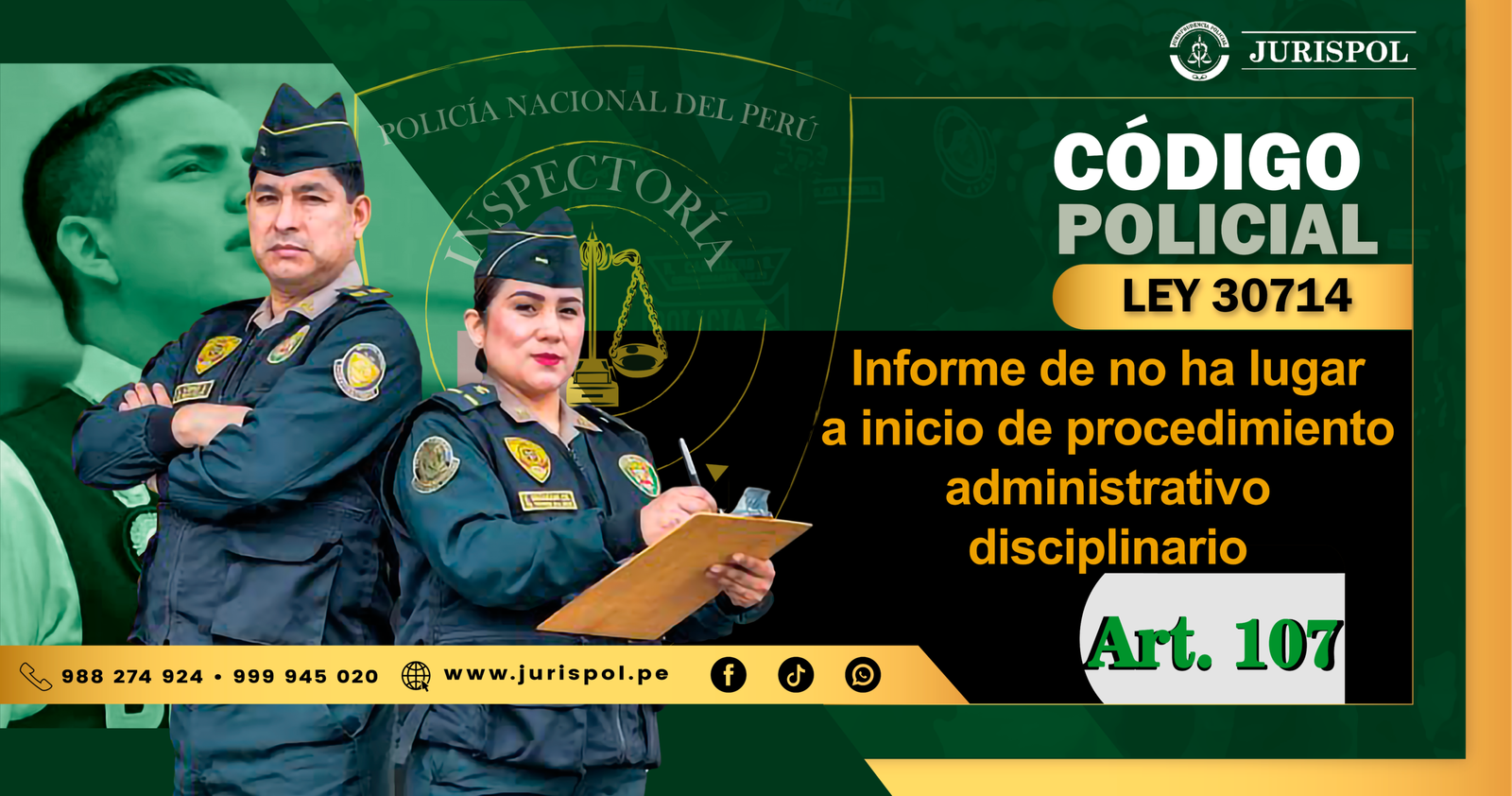 [Régimen Disciplinario de la PNP] En virtud del Reglamento de la Ley 30714, que regula el Régimen Disciplinario de la Policía Nacional del Perú, a través del área de redacción y el observatorio jurídico de Jurisprudencia Policial – JURISPOL, se ha elaborado Jurisprudencia actual y esencial al Reglamento del Régimen Disciplinario 30714, una selección estratégica de criterios que permiten comprender y aplicar correctamente esta normativa, particularmente el Art. 107. Informe de no ha lugar a inicio de PAD