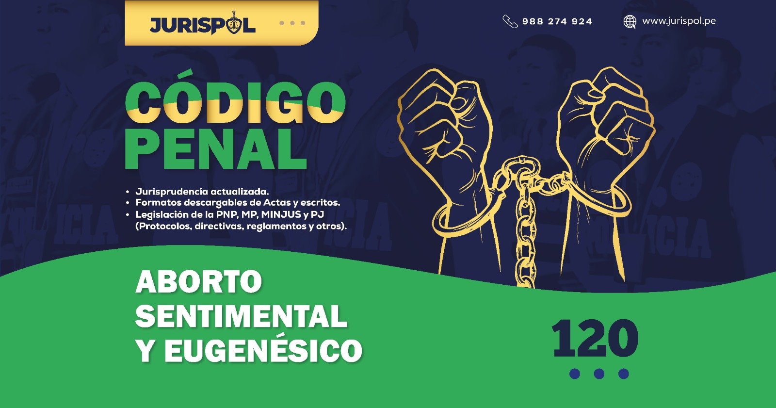 [Código Penal] En virtud del Decreto Legislativo 635, se promulgó el CÓDIGO PENAL PERUANO, a través del área de redacción y el observatorio jurídico de Jurisprudencia Policial – JURISPOL, se ha elaborado Jurisprudencia actual y esencial, una selección estratégica de criterios que permiten comprender y aplicar correctamente esta normativa, particularmente el Art. 120 .- Aborto sentimental y eugenésico.