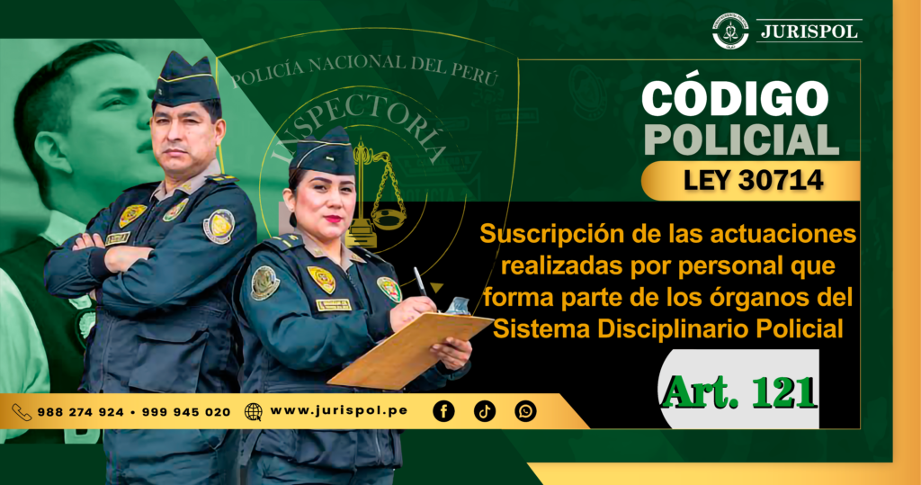 [Régimen Disciplinario de la PNP] En virtud del Reglamento de la Ley 30714, que regula el Régimen Disciplinario de la Policía Nacional del Perú, a través del área de redacción y el observatorio jurídico de Jurisprudencia Policial – JURISPOL, se ha elaborado Jurisprudencia actual y esencial al Reglamento del Régimen Disciplinario 30714, una selección estratégica de criterios que permiten comprender y aplicar correctamente esta normativa, particularmente el Art. 121. Suscripción de las actuaciones realizadas por personal que forma parte de los órganos del Sistema Disciplinario Policial.