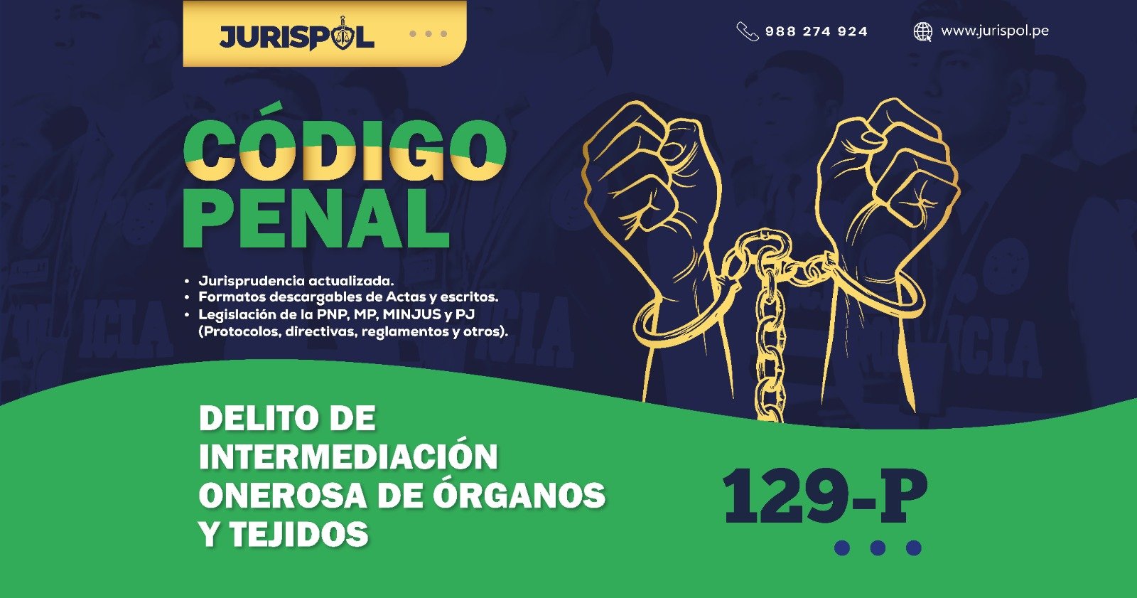 [Código Penal] En virtud del Decreto Legislativo 635, se promulgó el CÓDIGO PENAL PERUANO, a través del área de redacción y el observatorio jurídico de Jurisprudencia Policial – JURISPOL, se ha elaborado Jurisprudencia actual y esencial, una selección estratégica de criterios que permiten comprender y aplicar correctamente esta normativa, particularmente el Art. 129-P .- Delito de intermediación onerosa de órganos y tejidos.