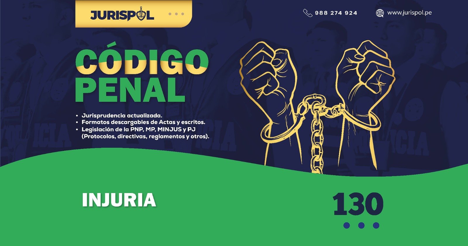 [Código Penal] En virtud del Decreto Legislativo 635, se promulgó el CÓDIGO PENAL PERUANO, a través del área de redacción y el observatorio jurídico de Jurisprudencia Policial – JURISPOL, se ha elaborado Jurisprudencia actual y esencial, una selección estratégica de criterios que permiten comprender y aplicar correctamente esta normativa, particularmente el Art. 130.- Injuria.