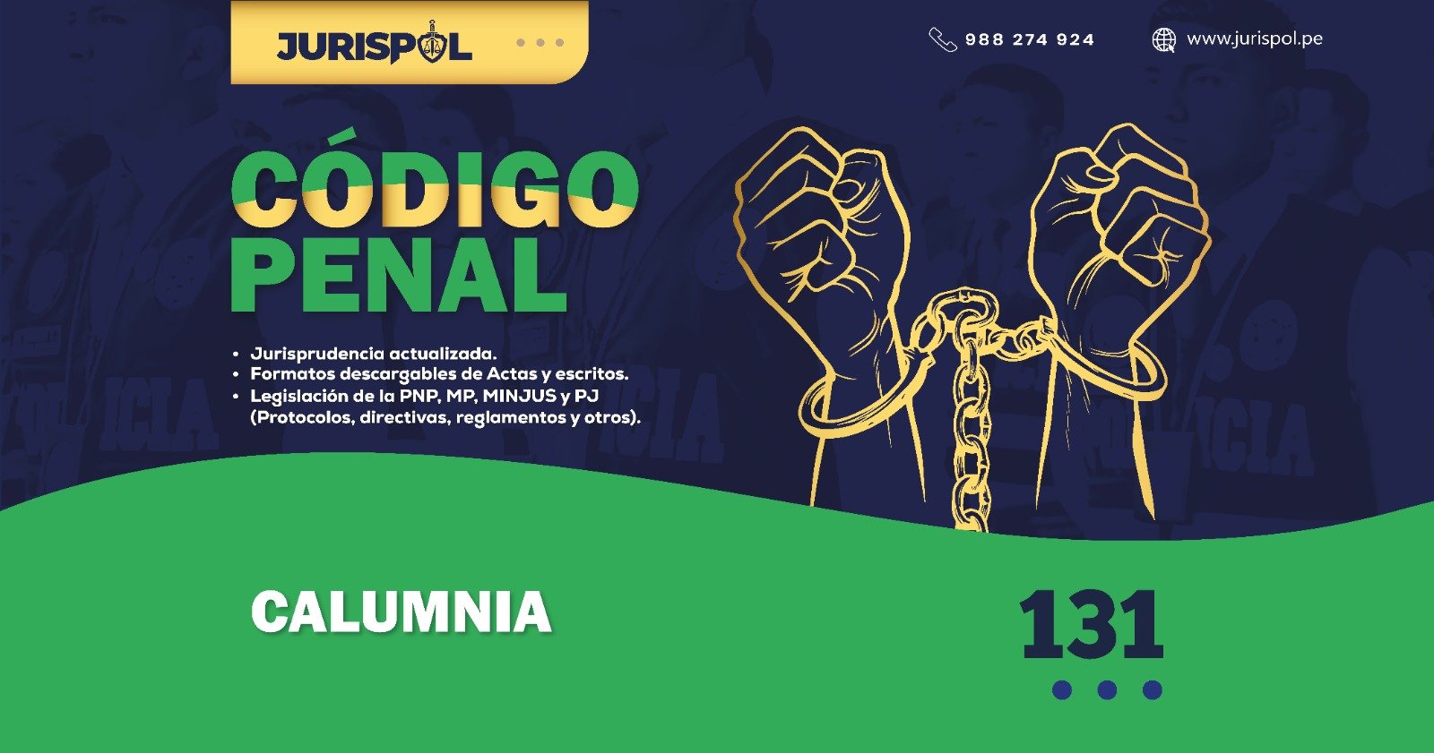 [Código Penal] En virtud del Decreto Legislativo 635, se promulgó el CÓDIGO PENALPERUANO, a través del área de redacción y el observatorio jurídico de Jurisprudencia Policial – JURISPOL, se ha elaborado Jurisprudencia actual y esencial, una selección estratégica de criterios que permiten comprender y aplicar correctamente esta normativa, particularmente el Art. 131.- Calumnia.