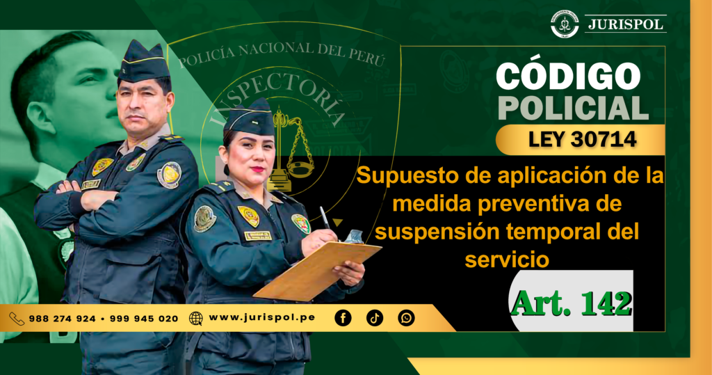 [Régimen Disciplinario de la PNP] En virtud del Reglamento de la Ley 30714, que regula el Régimen Disciplinario de la Policía Nacional del Perú, a través del área de redacción y el observatorio jurídico de Jurisprudencia Policial – JURISPOL, se ha elaborado Jurisprudencia actual y esencial al Reglamento del Régimen Disciplinario 30714, una selección estratégica de criterios que permiten comprender y aplicar correctamente esta normativa, particularmente el Art. 142. Supuesto de aplicación de la medida preventiva de suspensión temporal del servicio.