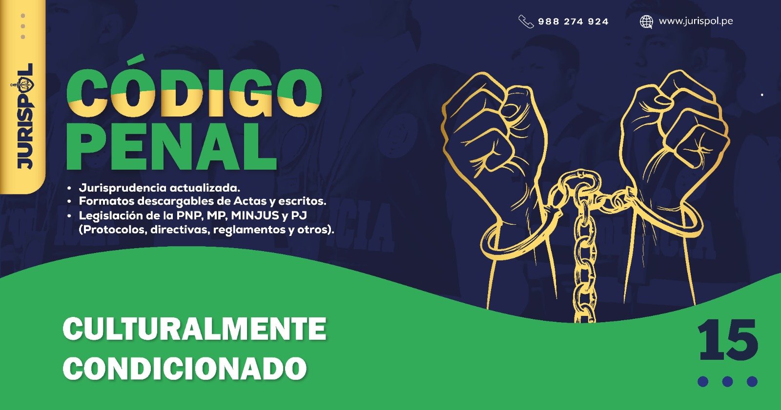 [Código Penal] En virtud del Decreto Legislativo 635, se promulgó el CÓDIGO PENAL PERUANO, a través del área de redacción y el observatorio jurídico de Jurisprudencia Policial – JURISPOL, se ha elaborado Jurisprudencia actual y esencial, una selección estratégica de criterios que permiten comprender y aplicar correctamente esta normativa, particularmente el Art. 15 . Artículo 15.- Error de comprensión culturalmente condicionado.