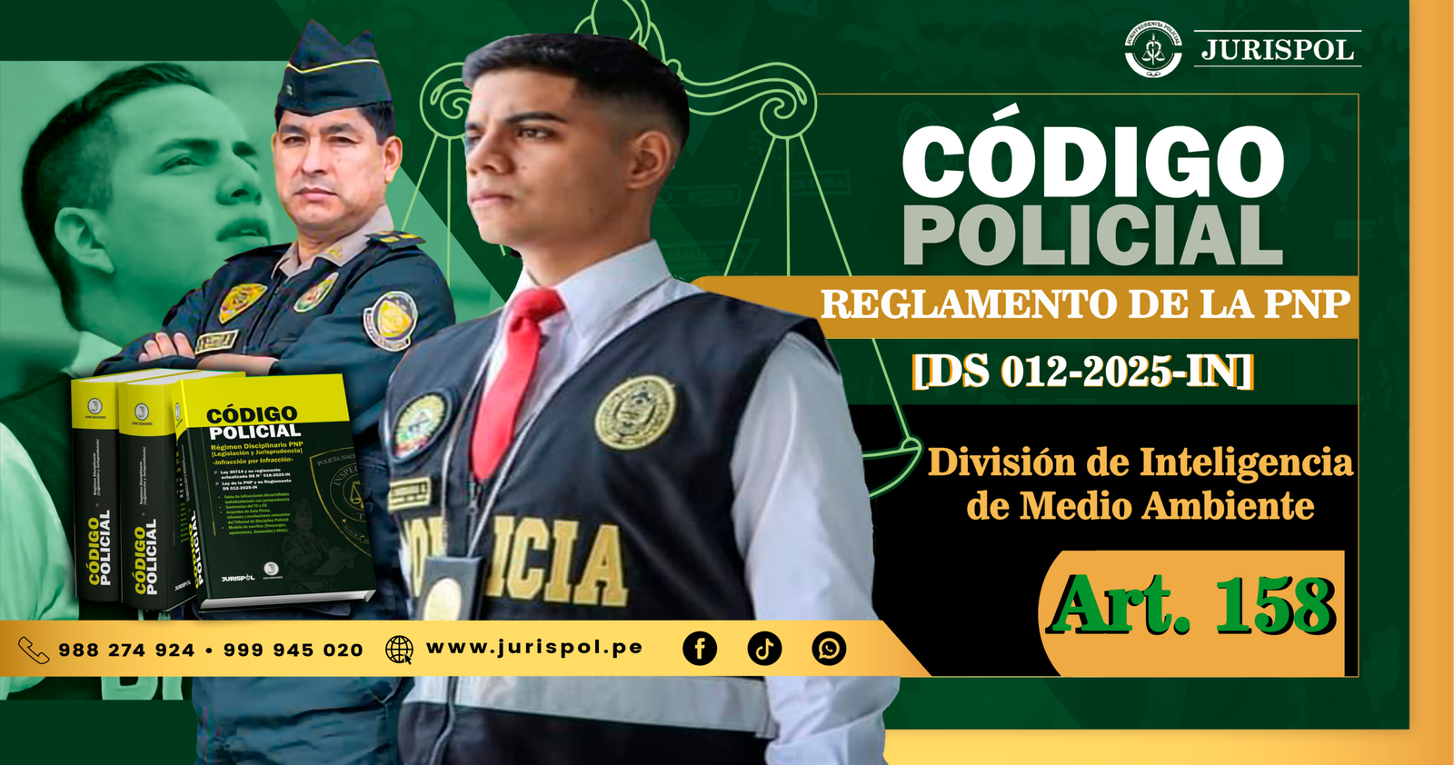 [Reglamento de la Ley de la PNP] Mediante el DS 012-2025-IN, publicado el 05NOV2025, se aprobó el Reglamento de la Ley de la Policía Nacional del Perú; a través del área de redacción y observatorio jurídico de Jurisprudencia Policial – JURISPOL, se ha elaborado y seleccionado criterios estratégicos que permiten aplicar correctamente esta normativa. Artículo 158. División de Inteligencia de Medio Ambiente.