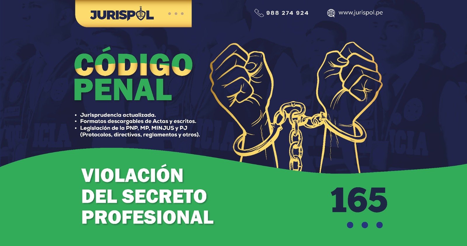 [Código Penal] En virtud del Decreto Legislativo 635, se promulgó el CÓDIGO PENAL PERUANO, a través del área de redacción y el observatorio jurídico de Jurisprudencia Policial – JURISPOL, se ha elaborado Jurisprudencia actual y esencial, una selección estratégica de criterios que permiten comprender y aplicar correctamente esta normativa, particularmente el Art. 165.- Violación del secreto profesional.