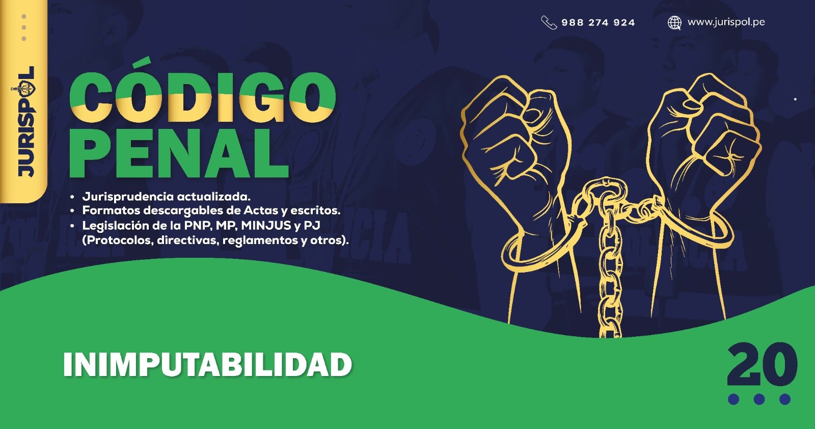 [Código Penal] En virtud del Decreto Legislativo 635, se promulgó el CÓDIGO PENAL PERUANO, a través del área de redacción y el observatorio jurídico de Jurisprudencia Policial – JURISPOL, se ha elaborado Jurisprudencia actual y esencial, una selección estratégica de criterios que permiten comprender y aplicar correctamente esta normativa, particularmente el Art. 20 . Inimputabilidad .