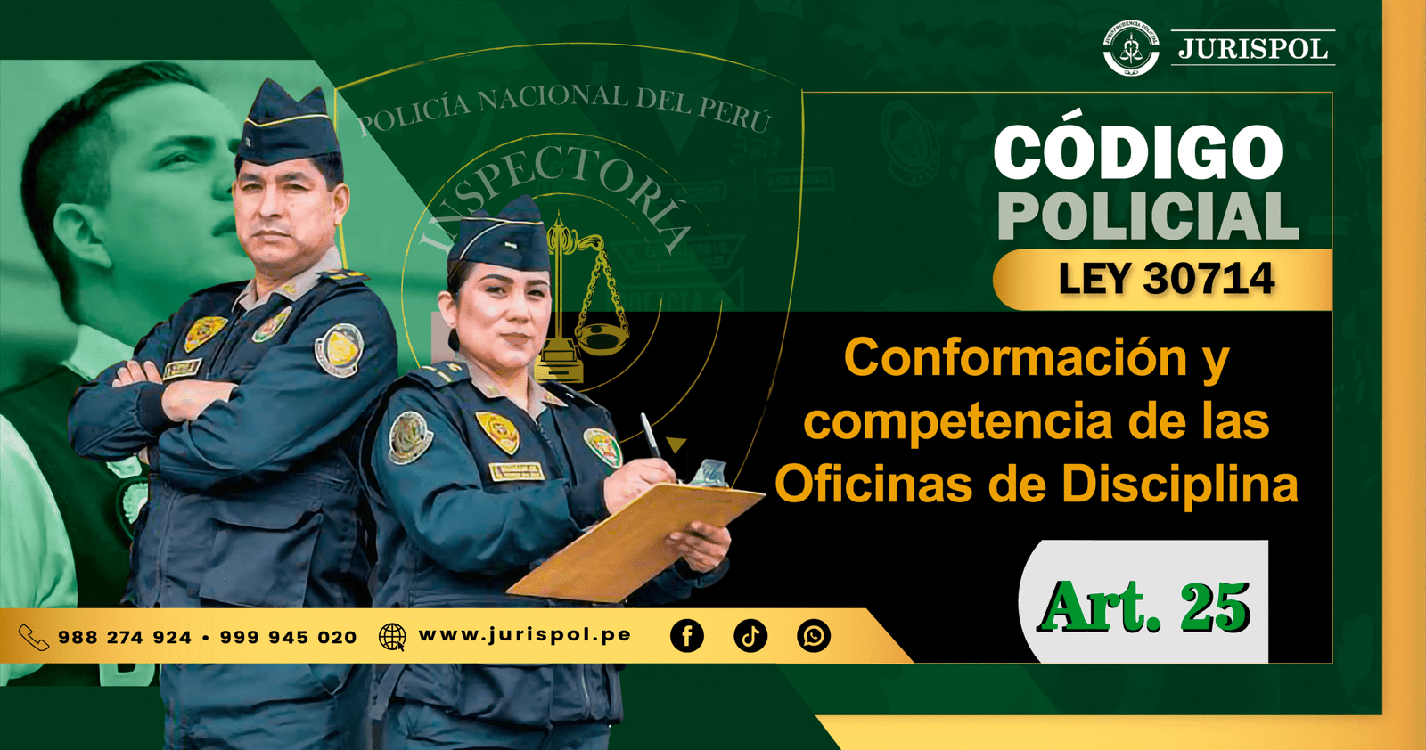 [Régimen Disciplinario de la PNP] En virtud del Reglamento de la Ley 30714, que regula el Régimen Disciplinario de la Policía Nacional del Perú, a través del área de redacción y el observatorio jurídico de Jurisprudencia Policial – JURISPOL, se ha elaborado Jurisprudencia actual y esencial al Reglamento del Régimen Disciplinario 30714, una selección estratégica de criterios que permiten comprender y aplicar correctamente esta normativa, particularmente el Art. 25. Conformación y competencia de las Oficinas de Disciplina.