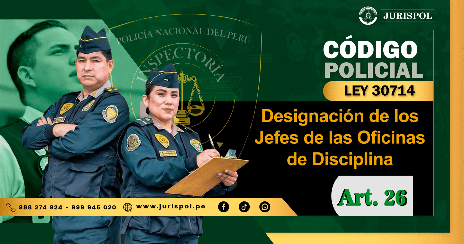 [Régimen Disciplinario de la PNP] En virtud del Reglamento de la Ley 30714, que regula el Régimen Disciplinario de la Policía Nacional del Perú, a través del área de redacción y el observatorio jurídico de Jurisprudencia Policial – JURISPOL, se ha elaborado Jurisprudencia actual y esencial al Reglamento del Régimen Disciplinario 30714, una selección estratégica de criterios que permiten comprender y aplicar correctamente esta normativa, particularmente el Art. 26. Designación de los Jefes de las Oficinas de Disciplina.
