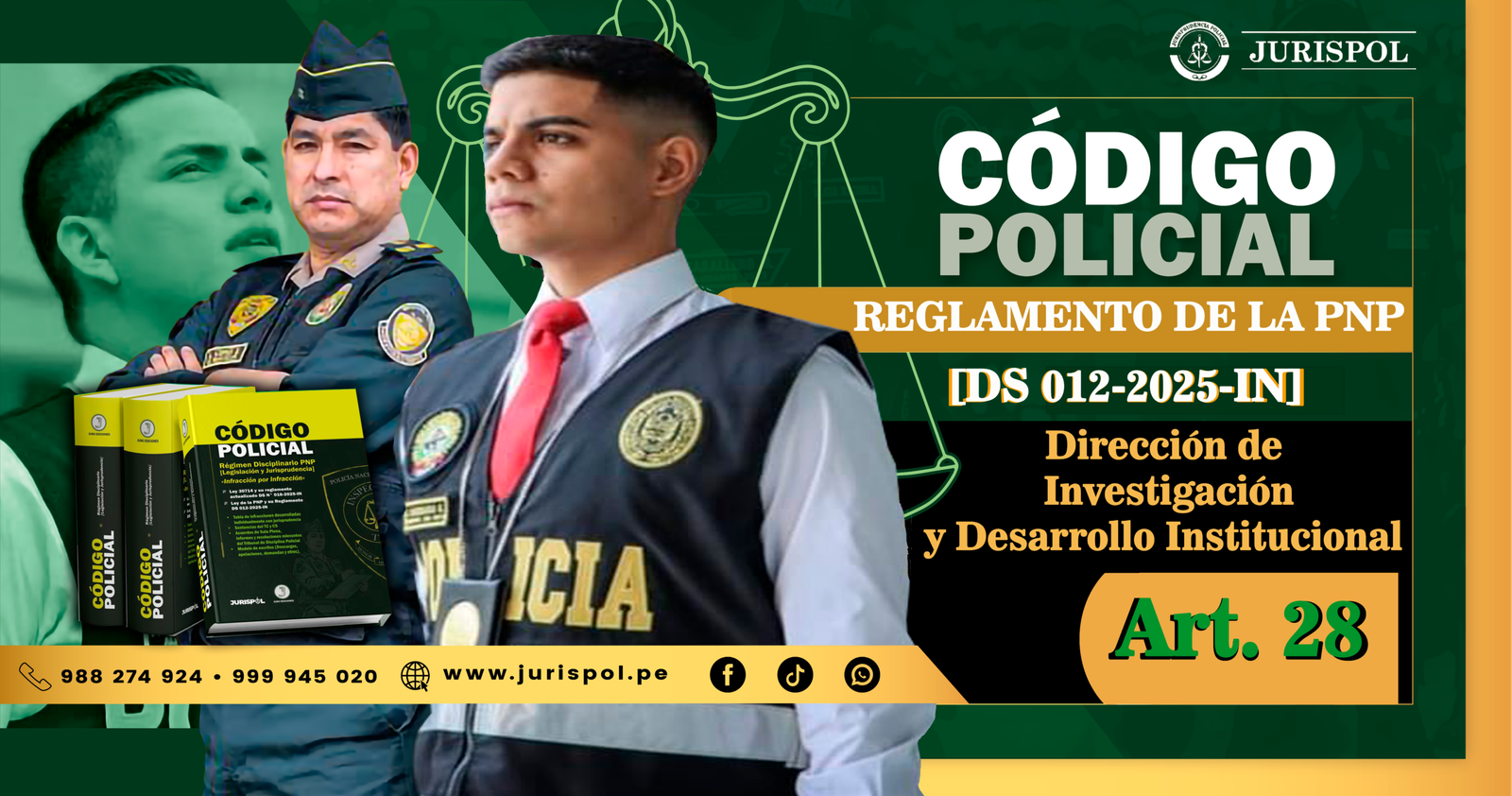[Reglamento de la Ley de la PNP] Mediante el DS 012-2025-IN, publicado el 05NOV2025, se aprobó el Reglamento de la Ley de la Policía Nacional del Perú; a través del área de redacción y observatorio jurídico de Jurisprudencia Policial – JURISPOL, se ha elaborado y seleccionado criterios estratégicos que permiten aplicar correctamente esta normativa. Artículo 28. Dirección de Investigación y Desarrollo Institucional.