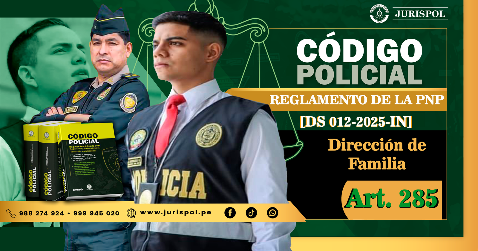 [Reglamento de la Ley de la PNP] Mediante el DS 012-2025-IN, publicado el 05NOV2025, se aprobó el Reglamento de la Ley de la Policía Nacional del Perú; a través del área de redacción y observatorio jurídico de Jurisprudencia Policial – JURISPOL, se ha elaborado y seleccionado criterios estratégicos que permiten aplicar correctamente esta normativa. Artículo 285. Dirección de Familia.