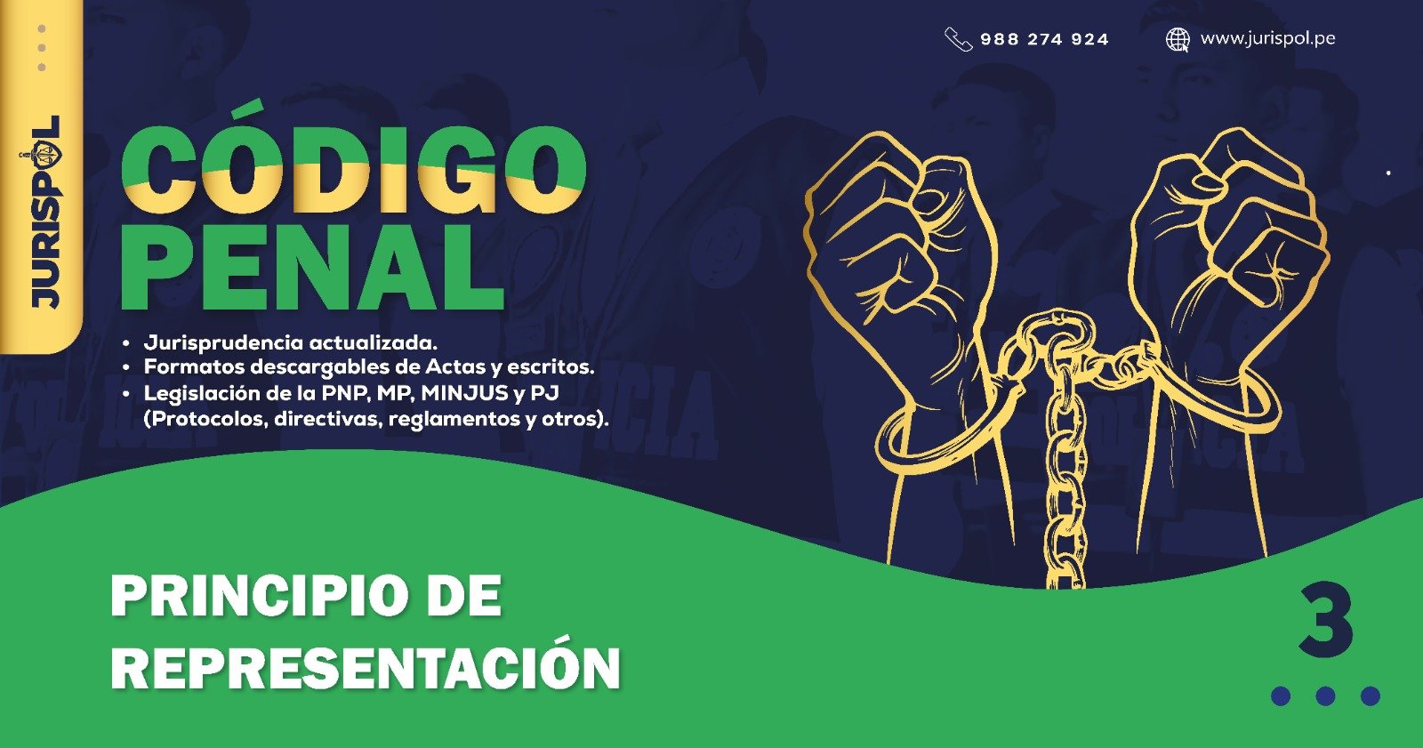 [Código Penal] En virtud del Decreto Legislativo 635, se promulgó el CÓDIGO PENAL PERUANO, a través del área de redacción y el observatorio jurídico de Jurisprudencia Policial – JURISPOL, se ha elaborado Jurisprudencia actual y esencial, una selección estratégica de criterios que permiten comprender y aplicar correctamente esta normativa, particularmente el Art. 3 . Principio de Representación.
