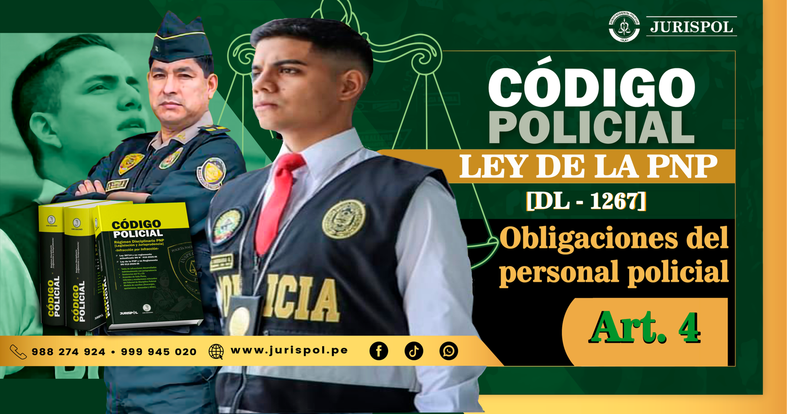 [Ley de la PNP] Mediante el DL 1267, publicado el 18DIC2016 se aprobó la Ley de la Policía Nacional del Perú; a través del área de redacción y observatorio jurídico de Jurisprudencia Policial – JURISPOL, se ha elaborado y seleccionado criterios estratégicos que permiten aplicar correctamente esta normativa, concretamente en el Art. 4. Obligaciones del personal policial.