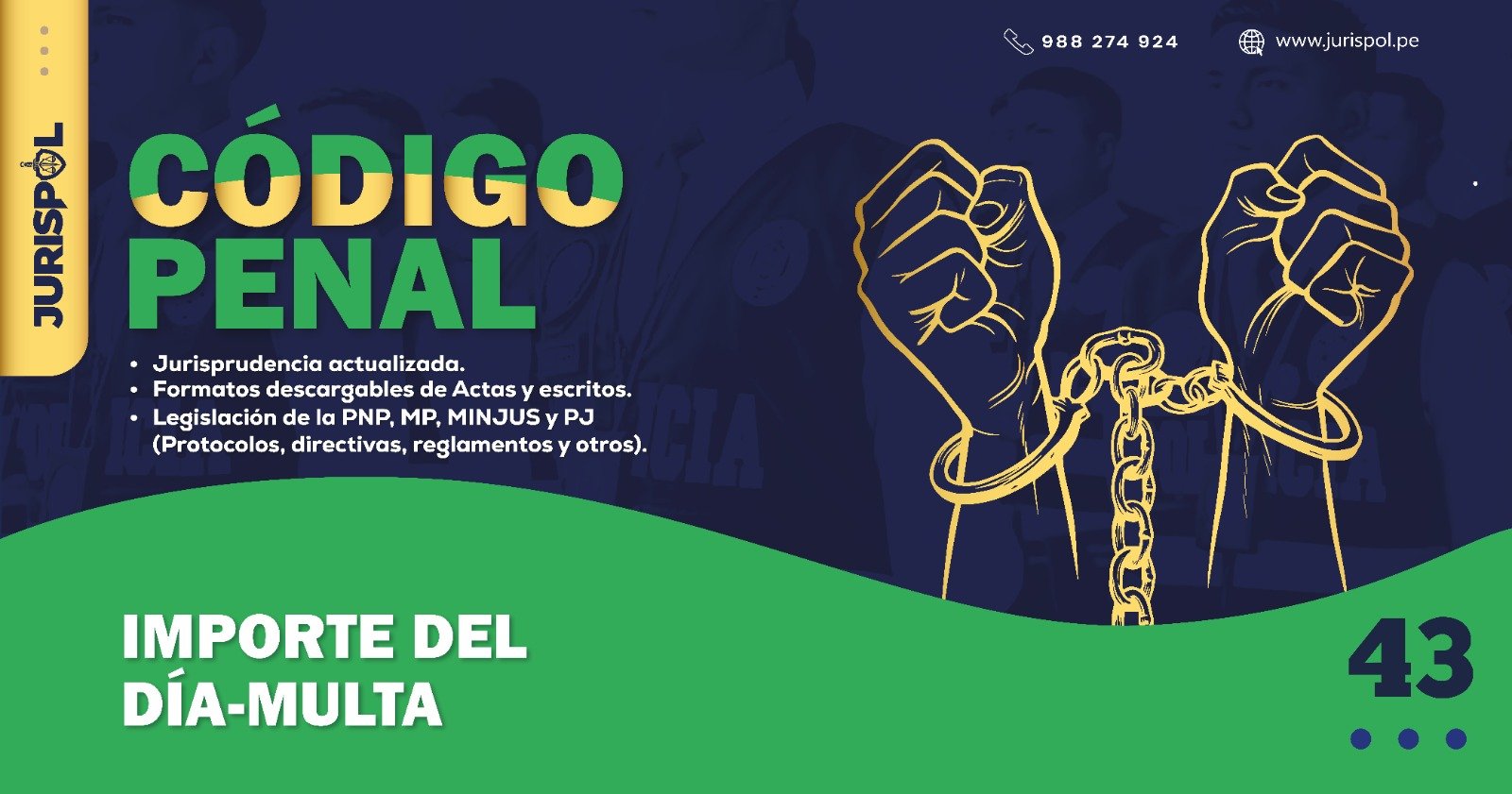 [Código Penal] En virtud del Decreto Legislativo 635, se promulgó el CÓDIGO PENAL PERUANO, a través del área de redacción y el observatorio jurídico de Jurisprudencia Policial – JURISPOL, se ha elaborado Jurisprudencia actual y esencial, una selección estratégica de criterios que permiten comprender y aplicar correctamente esta normativa, particularmente el Art. 43 . Importe del día-multa.