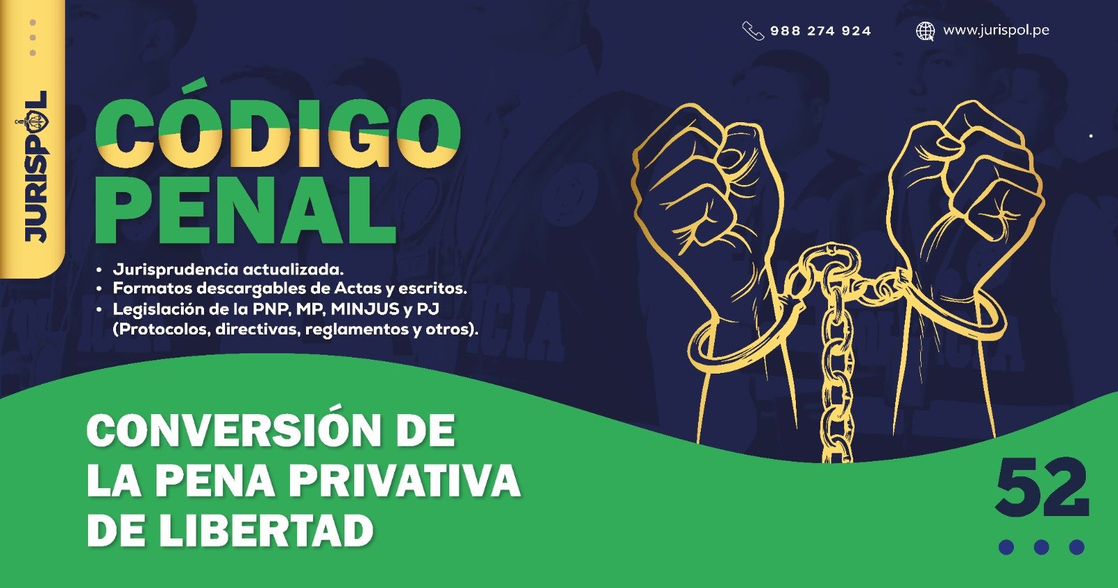 [Código Penal] En virtud del Decreto Legislativo 635, se promulgó el CÓDIGO PENAL PERUANO, a través del área de redacción y el observatorio jurídico de Jurisprudencia Policial – JURISPOL, se ha elaborado Jurisprudencia actual y esencial, una selección estratégica de criterios que permiten comprender y aplicar correctamente esta normativa, particularmente el Art. 52 . Conversión de la pena privativa de libertad.