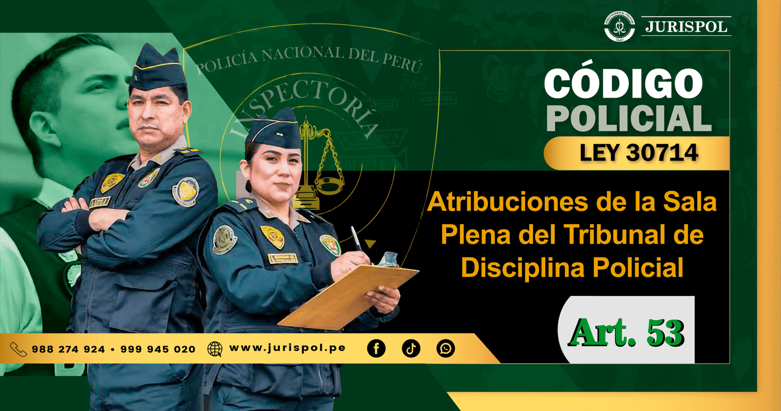 [Régimen Disciplinario de la PNP] En virtud del Reglamento de la Ley 30714, que regula el Régimen Disciplinario de la Policía Nacional del Perú, a través del área de redacción y el observatorio jurídico de Jurisprudencia Policial – JURISPOL, se ha elaborado Jurisprudencia actual y esencial al Reglamento del Régimen Disciplinario 30714, una selección estratégica de criterios que permiten comprender y aplicar correctamente esta normativa, particularmente el Art. 53. Atribuciones de la Sala Plena del Tribunal de Disciplina Policial.