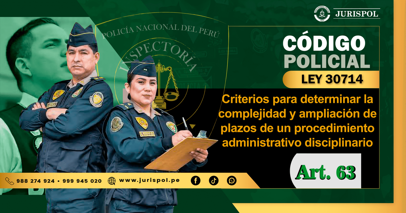 [Régimen Disciplinario de la PNP] En virtud del Reglamento de la Ley 30714, que regula el Régimen Disciplinario de la Policía Nacional del Perú, a través del área de redacción y el observatorio jurídico de Jurisprudencia Policial – JURISPOL, se ha elaborado Jurisprudencia actual y esencial al Reglamento del Régimen Disciplinario 30714, una selección estratégica de criterios que permiten comprender y aplicar correctamente esta normativa, particularmente el Art. 63. Criterios para determinar la complejidad y ampliación de plazos de un procedimiento administrativo disciplinario.