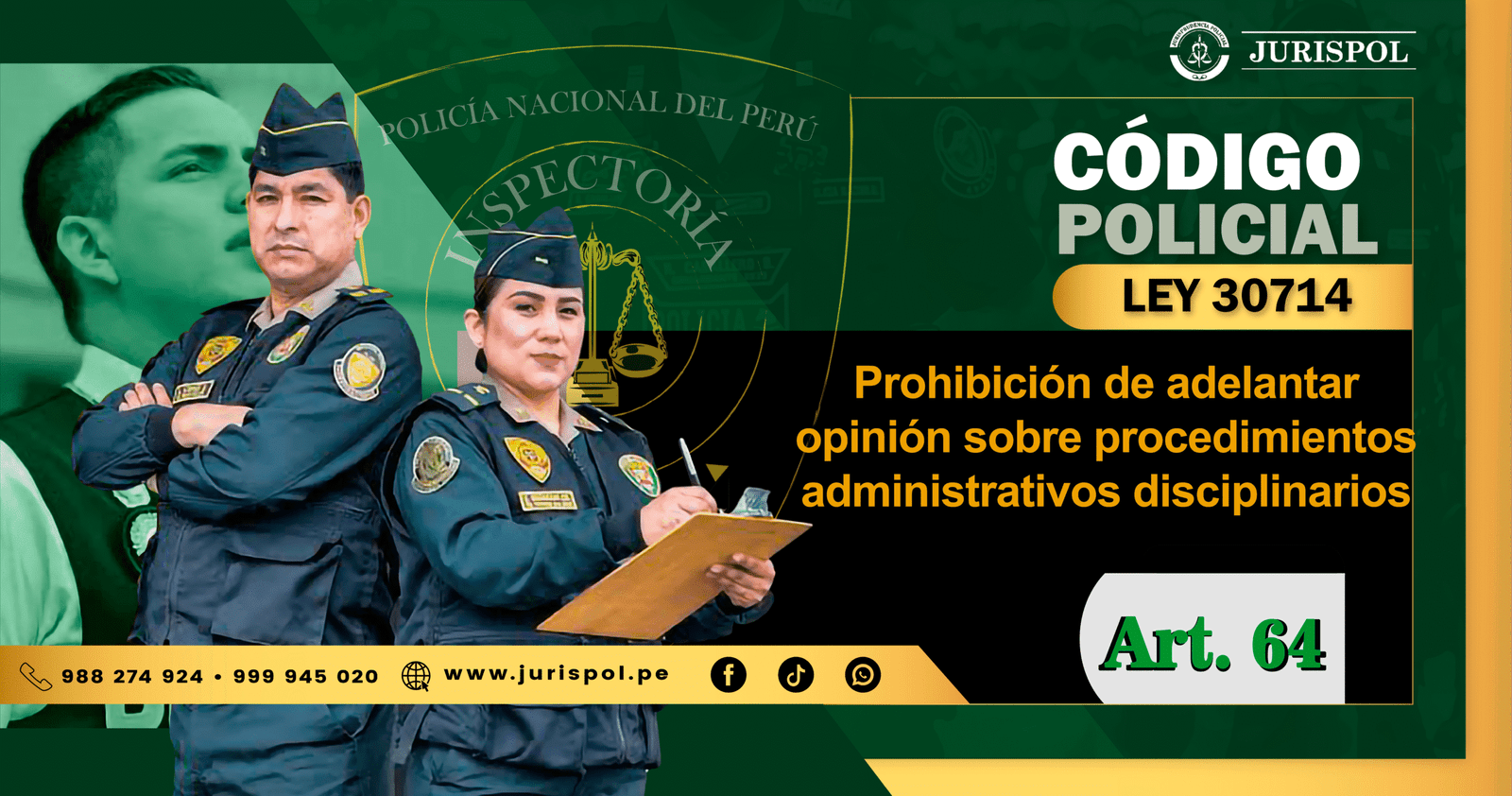 [Régimen Disciplinario de la PNP] En virtud del Reglamento de la Ley 30714, que regula el Régimen Disciplinario de la Policía Nacional del Perú, a través del área de redacción y el observatorio jurídico de Jurisprudencia Policial – JURISPOL, se ha elaborado Jurisprudencia actual y esencial al Reglamento del Régimen Disciplinario 30714, una selección estratégica de criterios que permiten comprender y aplicar correctamente esta normativa, particularmente el Art. 64. Prohibición de adelantar opinión sobre procedimientos administrativos disciplinarios.
