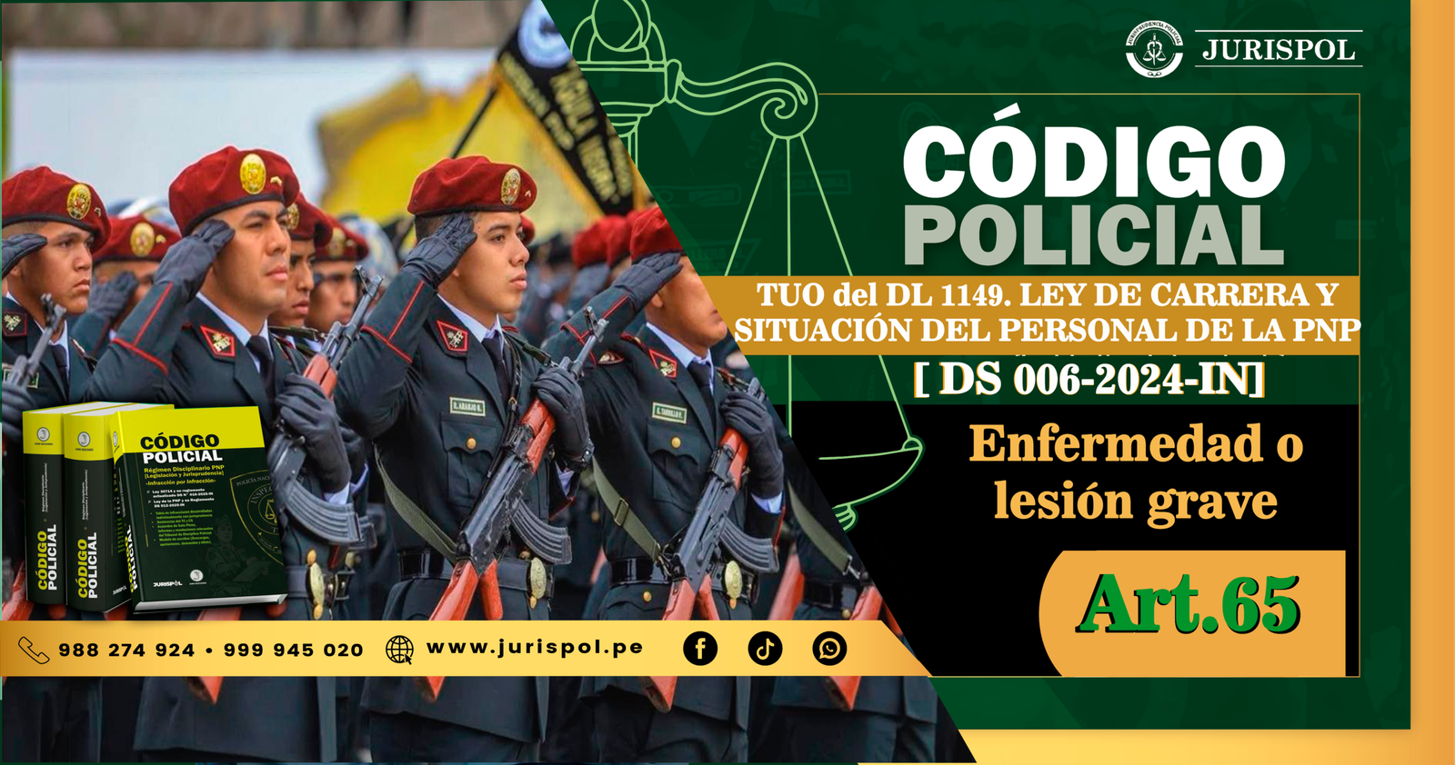 [TUO del DL 1149] Mediante el DS 006-2024-IN, publicado el 13JUL2024, se aprobó el TUO del DL 1149; a través del área de redacción y observatorio jurídico de Jurisprudencia Policial – JURISPOL, se ha elaborado y seleccionado criterios estratégicos que permiten aplicar correctamente esta normativa, concretamente en el Artículo 65. Enfermedad o lesión grave.