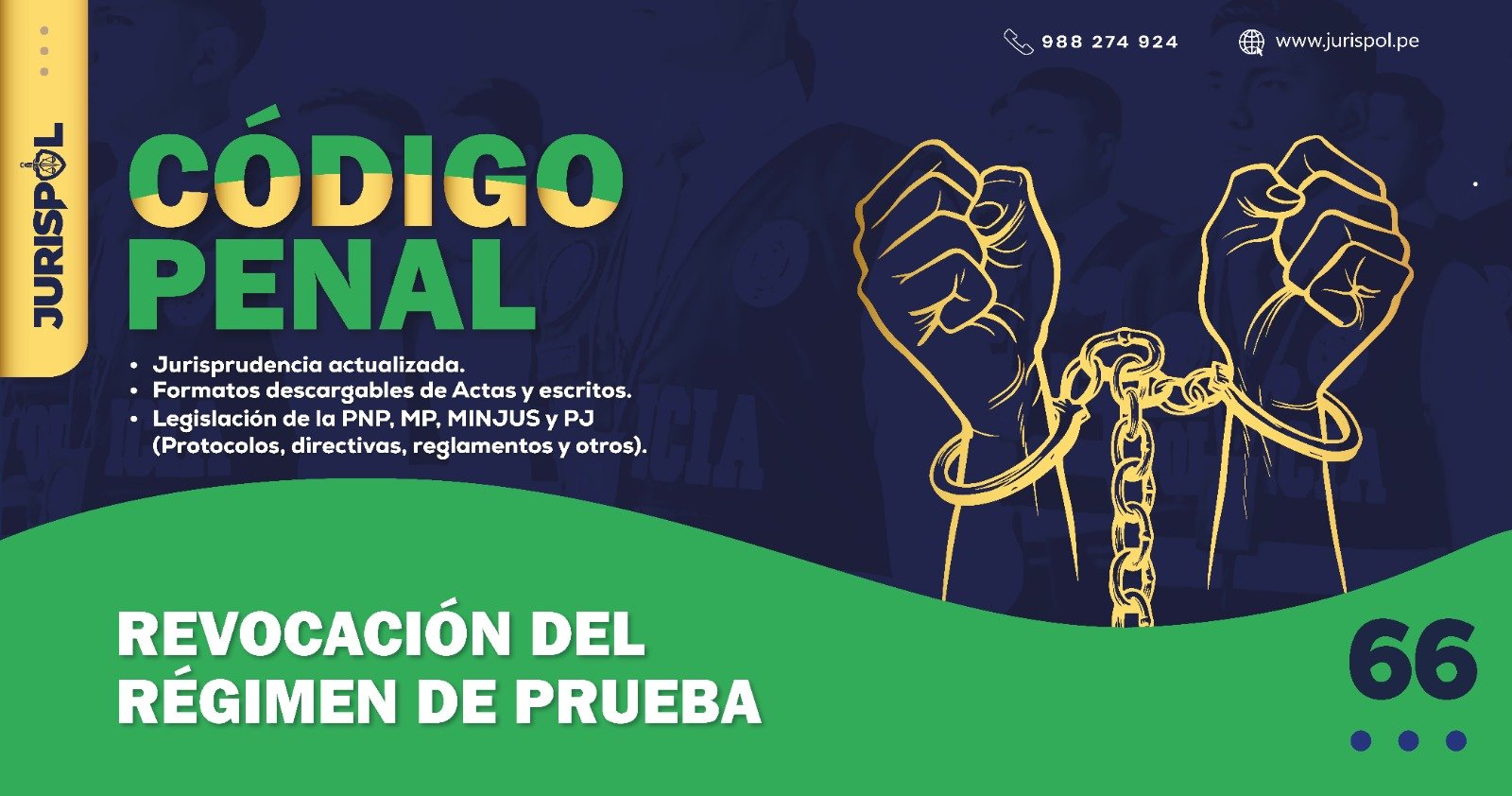 [Código Penal] En virtud del Decreto Legislativo 635, se promulgó el CÓDIGO PENAL PERUANO, a través del área de redacción y el observatorio jurídico de Jurisprudencia Policial – JURISPOL, se ha elaborado Jurisprudencia actual y esencial, una selección estratégica de criterios que permiten comprender y aplicar correctamente esta normativa, particularmente el Art. 66 .Revocación del régimen de prueba.
