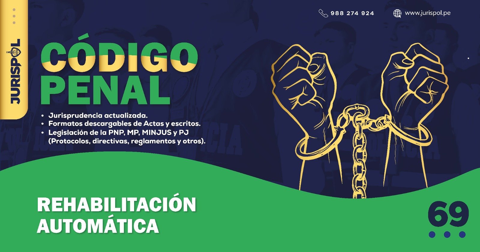 [Código Penal] En virtud del Decreto Legislativo 635, se promulgó el CÓDIGO PENAL PERUANO, a través del área de redacción y el observatorio jurídico de Jurisprudencia Policial – JURISPOL, se ha elaborado Jurisprudencia actual y esencial, una selección estratégica de criterios que permiten comprender y aplicar correctamente esta normativa, particularmente el Art. 69 . Rehabilitación automática .