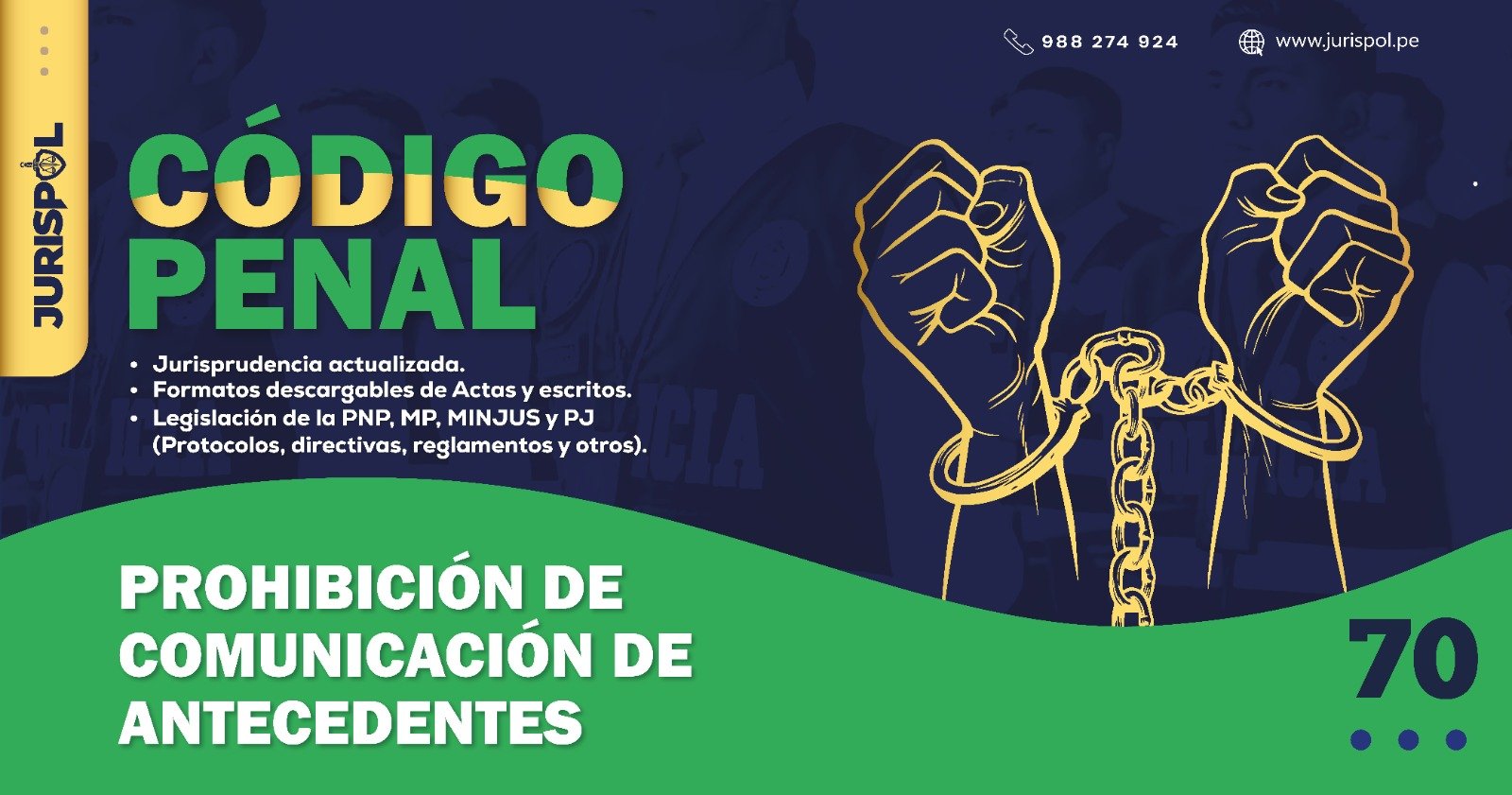 [Código Penal] En virtud del Decreto Legislativo 635, se promulgó el CÓDIGO PENAL PERUANO, a través del área de redacción y el observatorio jurídico de Jurisprudencia Policial – JURISPOL, se ha elaborado Jurisprudencia actual y esencial, una selección estratégica de criterios que permiten comprender y aplicar correctamente esta normativa, particularmente el Art. 70 . Prohibición de comunicación de antecedentes.