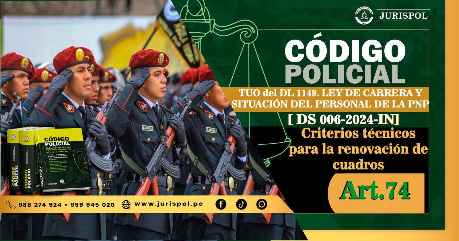 [TUO del DL 1149] Mediante el DS 006-2024-IN, publicado el 13JUL2024, se aprobó el TUO del DL 1149; a través del área de redacción y observatorio jurídico de Jurisprudencia Policial – JURISPOL, se ha elaborado y seleccionado criterios estratégicos que permiten aplicar correctamente esta normativa, concretamente en el Artículo 74. Criterios técnicos para la renovación de cuadros.