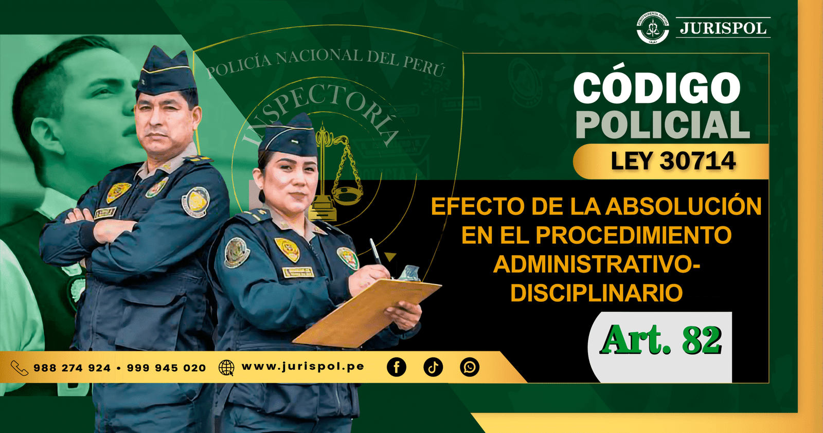 [Régimen Disciplinario de la PNP] En virtud de la Ley 30714, que regula el Régimen Disciplinario de la Policía Nacional del Perú, a través del área de redacción y el observatorio jurídico de Jurisprudencia Policial – JURISPOL, se ha elaborado Jurisprudencia actual y esencial al Régimen Disciplinario, una selección estratégica de criterios que permiten comprender y aplicar correctamente esta normativa, particularmente el Art. 82. Efecto de la absolución en el procedimiento administrativo-disciplinario.