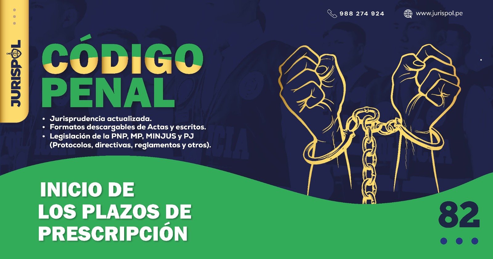 [Código Penal] En virtud del Decreto Legislativo 635, se promulgó el CÓDIGO PENAL PERUANO, a través del área de redacción y el observatorio jurídico de Jurisprudencia Policial – JURISPOL, se ha elaborado Jurisprudencia actual y esencial, una selección estratégica de criterios que permiten comprender y aplicar correctamente esta normativa, particularmente el Art. 82 .Inicio de los plazos de prescripción.