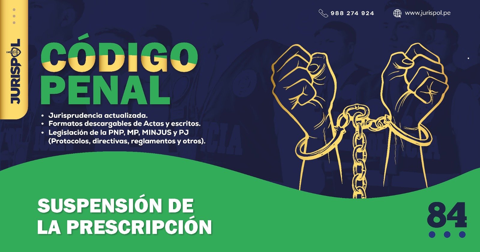 [Código Penal] En virtud del Decreto Legislativo 635, se promulgó el CÓDIGO PENAL PERUANO, a través del área de redacción y el observatorio jurídico de Jurisprudencia Policial – JURISPOL, se ha elaborado Jurisprudencia actual y esencial, una selección estratégica de criterios que permiten comprender y aplicar correctamente esta normativa, particularmente el Art. 84 .Suspensión de la prescripción .
