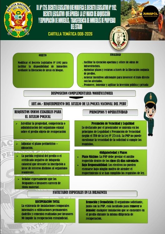 [Cartilla Temática PNP] Mediante La Dirección de Asesoría jurídica de la PNP, el 23FEB2026, oficializó la elaboración y difusión de la CARTILLA TEMÁTICA LEGAL 008-2026, como herramienta técnica y especializada de carácter jurídico para el empoderamiento del servicio policial. ⇒DESCARGA AQUÍ⇐