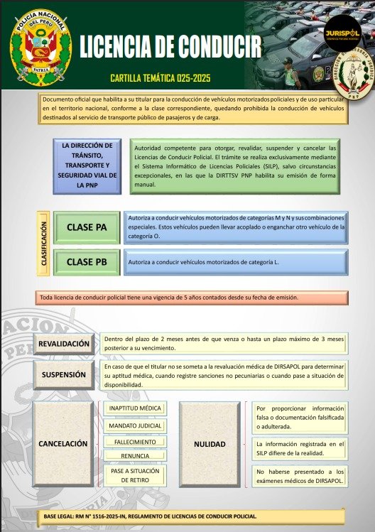 - Reglamento de licencias de conducir Policial 2025 [RM 1516-2025-IN]