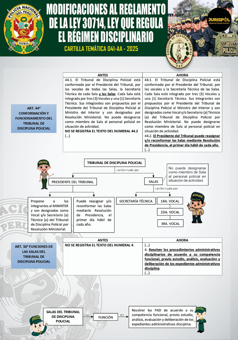 [Cartilla Temática PNP] Mediante La Dirección de Asesoría jurídica de la PNP, el 22ENE2026, oficializó la elaboración y difusión de la CARTILLA TEMÁTICA 041-AA – 2025, desarrollando los artículos 44 y 50 del Reglamento de la Ley 30714, como herramienta técnica y especializada de carácter jurídico para el empoderamiento del servicio policial.