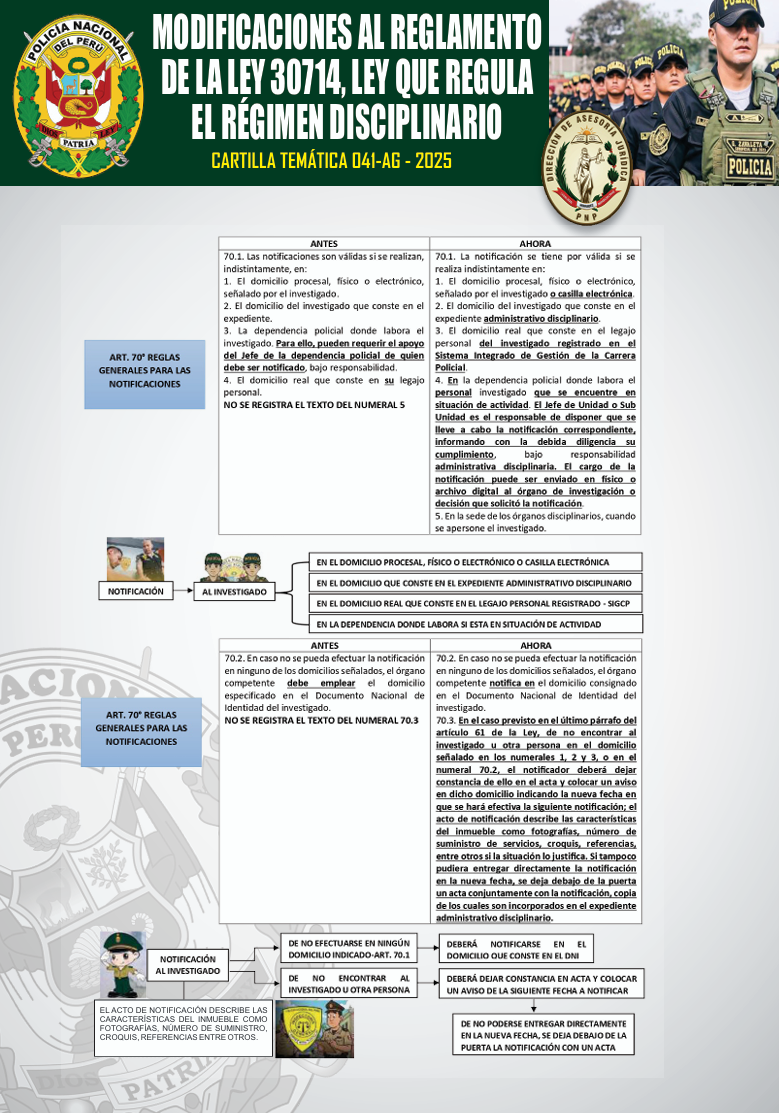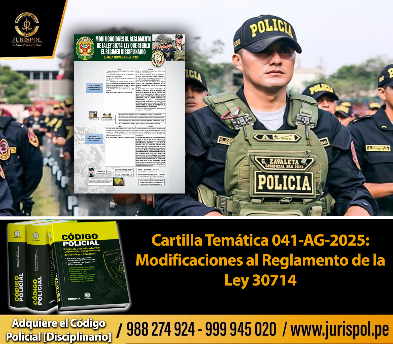 [Cartilla Temática PNP] Mediante La Dirección de Asesoría jurídica de la PNP, el 22ENE2026, oficializó la elaboración y difusión de la CARTILLA TEMÁTICA 041-AG – 2025, desarrollando el artículo 70 del Reglamento de la Ley 30714, como herramienta técnica y especializada de carácter jurídico para el empoderamiento del servicio policial.