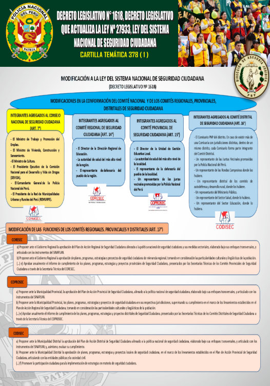 Cartilla temática 378-2024: DL 1618, DL que actualiza la ley 27933, ley del sistema nacional de seguridad ciudadana
