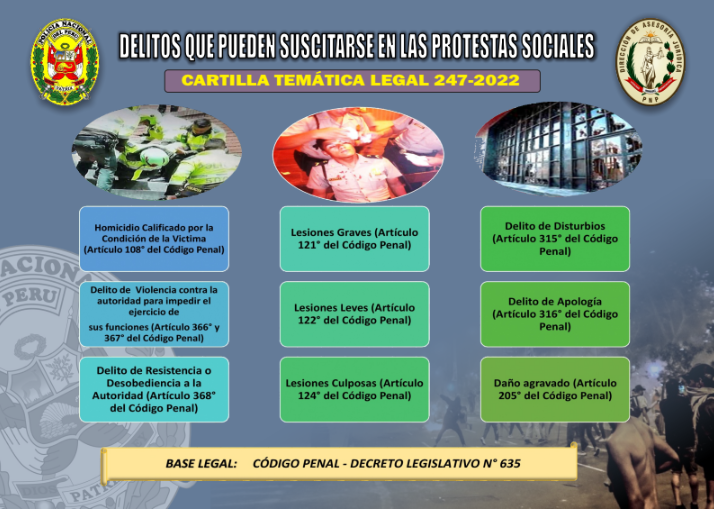 Cartilla temática legal 247-2022: Delitos que pueden suscitarse en las protestas sociales