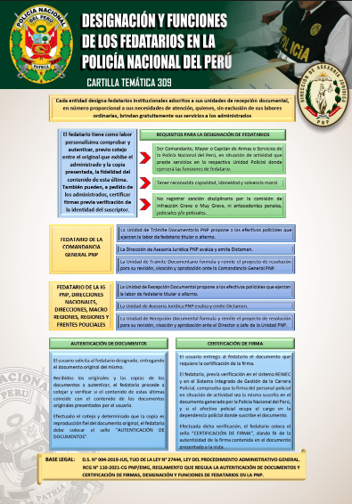 ⇒DESCARGA AQUÍ⇐ Cartilla temática legal 309: Designación y Funciones de los Fedatarios en la PNP