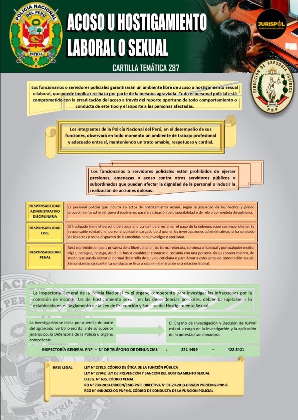 [Cartilla Temática PNP] Mediante La Dirección de Asesoría jurídica de la PNP, el 30ENE2023, oficializó la elaboración y difusión de la CARTILLA TEMÁTICA PNP 287-2023, como herramienta técnica y especializada de carácter jurídico para el empoderamiento del servicio policial. ⇒DESCARGA AQUÍ⇐