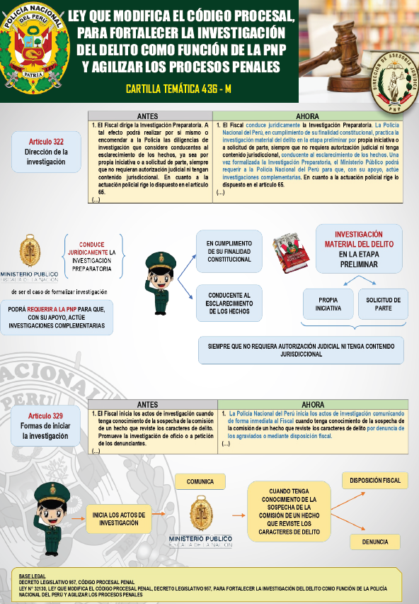 Cartilla temática PNP 436-M-2024: Ley que Modifica el Código Procesal, para Fortalecer la Investigación del Delito como Función de la PNP y Agilizar los Procesos Penales