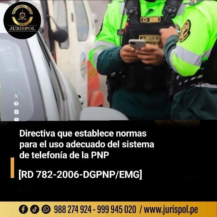 [Directiva PNP] Mediante la RD Nº 782–2006-DGPNP/EMG, de fecha 15 de abril del 2006, a través de la Dirección de Telemática de la PNP, se aprobó la «Directiva de normas y procedimientos para el uso adecuado del Sistema de Telefonía Básica Público y Privado, Telefonía Celular y Líneas Dedicadas IP en las Dependencias de la Policía Nacional del Perú a nivel nacional» ⇒DESCARGA AQUÍ⇐