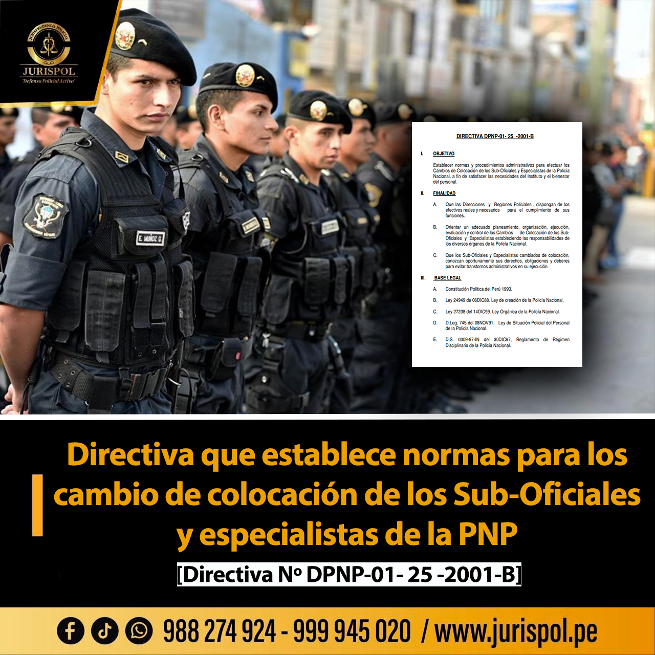 [Directivas PNP] `Se les comparte la DIRECTIVA DPNP-01- 25 -2001-B, de fecha 04 de febrero  de 2001 «Directiva que establece normas para los cambio de colocación de los Sub-Oficiales y especialistas de la PNP»⇒DESCRAGA AQUÍ⇐