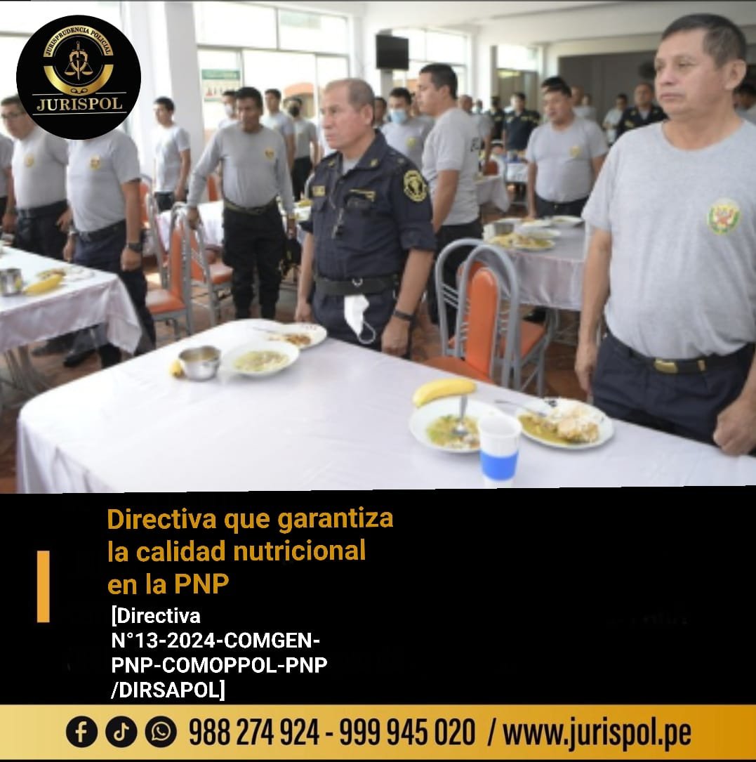 [Directivas PNP] Mediante RCG N° 247-2024-CG PNP/EMG, de fecha 29 de junio de 2024, a través de la Comandancia General, se aprobó la directiva «Directiva que establece normas y lineamientos para garantizar la calidad nutricional, sanitaria e inocuidad de la ración orgánica única diaria» ⇒DESCARGA AQUÍ⇐