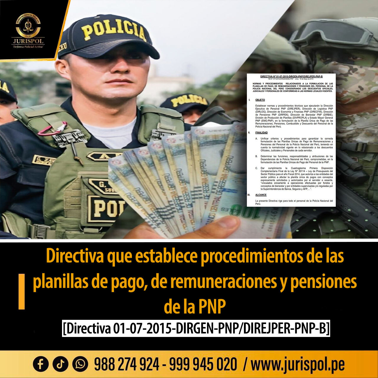 ⇒DESCARGA AQUÍ⇐ «Directiva que establece Normas y Procedimientos de las planillas de pago, de remuneraciones y pensiones de la PNP [Directiva N° 01-07-2015-DIRGEN-PNP/DIREJPER-PNP-B]»
