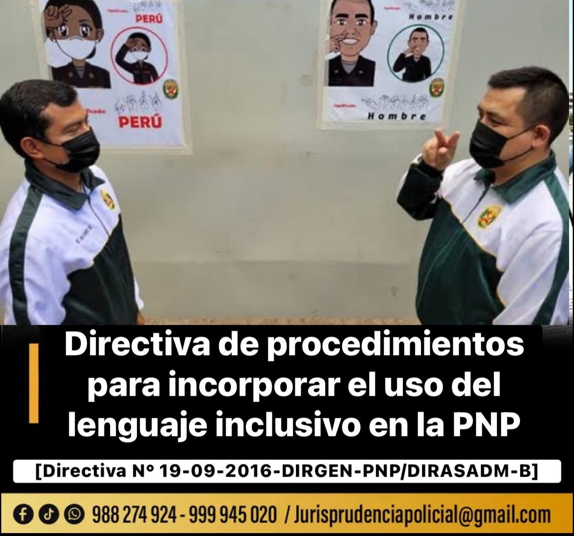 [Directivas PNP] Mediante la Resolución Directoral N° 376-2016-DIRGEN/EMG-PNP, de fecha 10 de mayo de 2016, el Estado Mayor General de la PNP, aprobó la «Directiva que establece normas y procedimientos para incorporar el uso del lenguaje inclusivo en la PNP» ⇒DESCARGA AQUÍ⇐