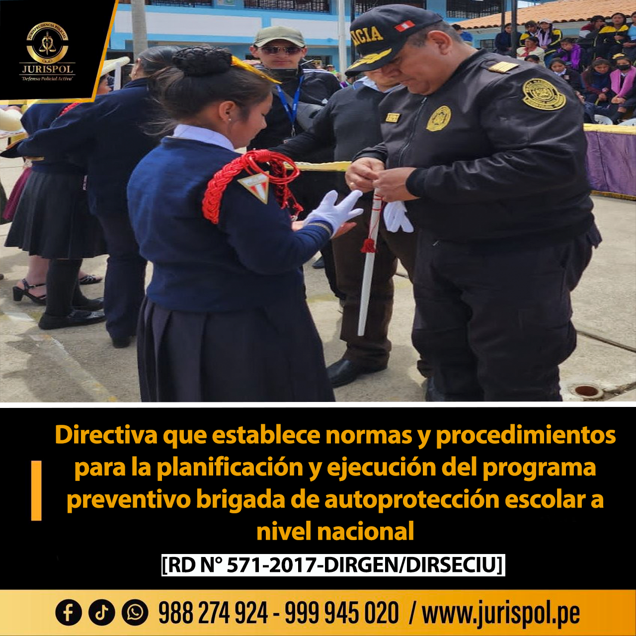 [Directivas PNP] Mediante la RD N° 571-2017-DIRGEN/DIRSECIU, de fecha de 23 de agosto de 2017, a través de la Comandancia General de la PNP, se aprobó la «Directiva que establece programa preventivo brigada de autoprotección escolar a nivel nacional» ⇒DESCARGA AQUÍ⇐