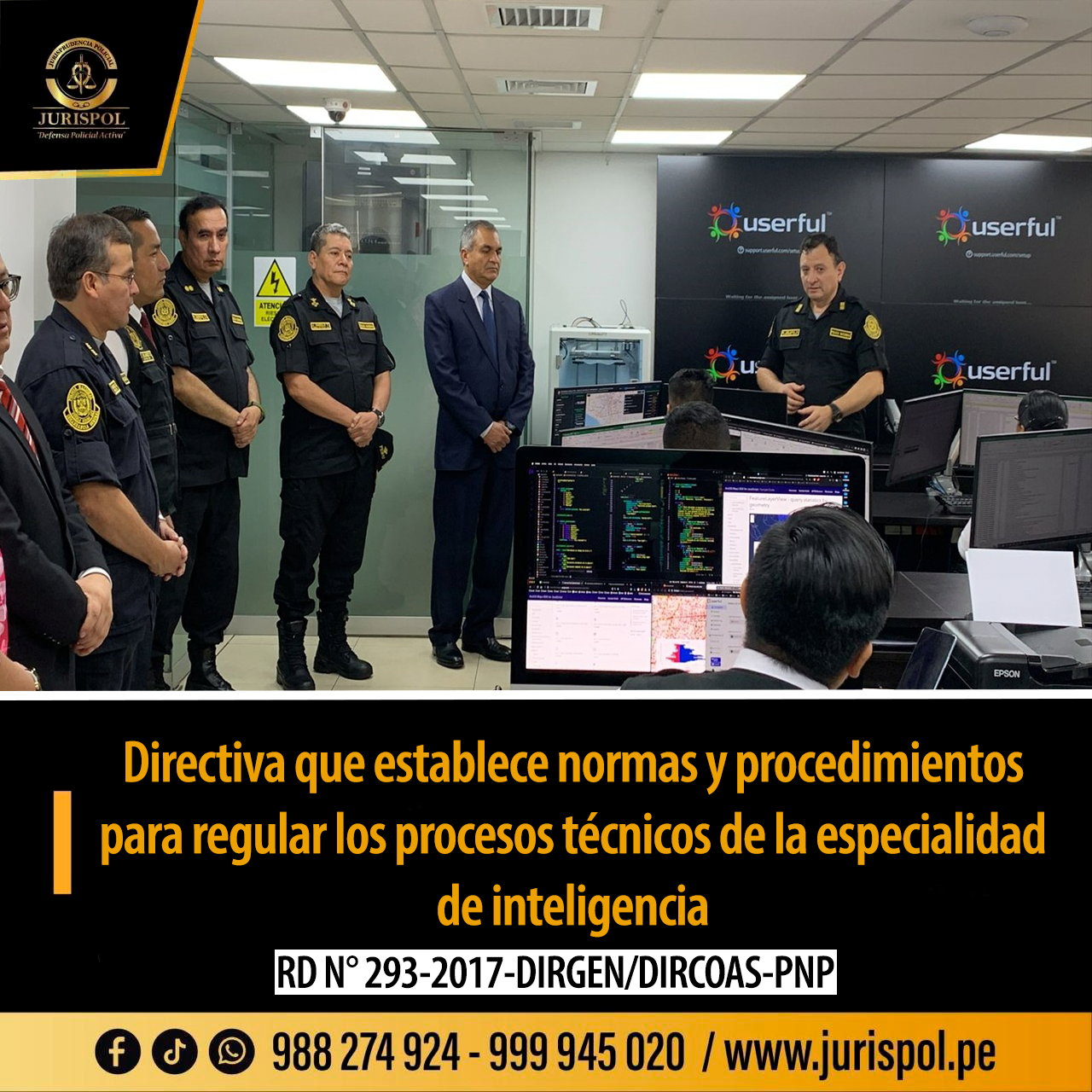 [Directivas PNP] Mediante la RD N° 293-2017-DIRGEN/DIRCOAS-PNP, de fecha 31 de mayo de 2017, a través de la Dirección General de la PNP, se aprobó la directiva 02-08-2017-DIRGEN/SUB-DGPNP-DIRIN-B «Directiva que establece normas y procedimientos para regular los procesos técnicos de la especialidad de inteligencia» ⇒DESCARGA AQUÍ⇐