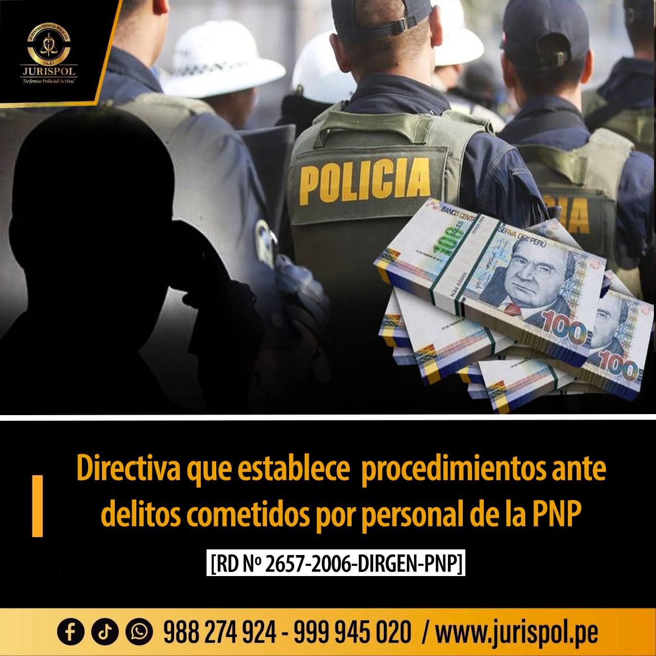 [DIRECTIVAS PNP] Mediante la RD Nº 2657-2006-DIRGEN-PNP, de fecha 13 de diciembre de 2006, a través de la Dirección General de la PNP, se aprobó la Directiva DGPNP N° 01-76-2006-B «Directiva que establece procedimientos que deben adoptar las dependencias PNP cuando el Personal Policial en Actividad incurra en la Comisión de Delitos Comunes y/o de Función» ⇒DESCARGA AQUÍ⇐